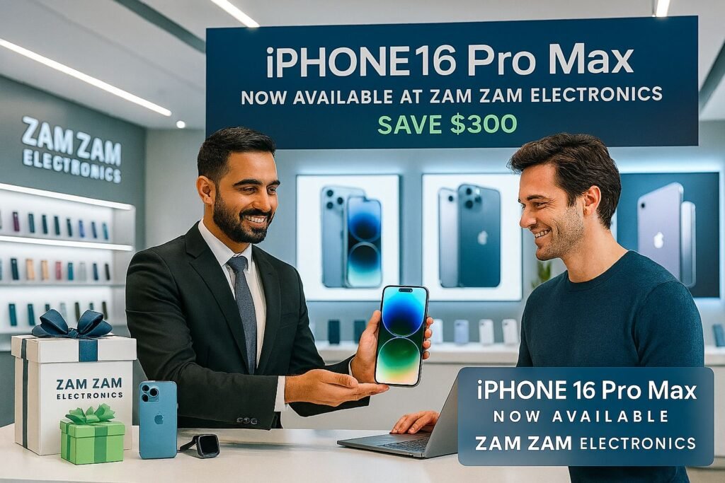 Don’t miss out on this incredible offer. Visit Zam Zam Electronics today to take advantage of the $300 discount on the iPhone 16 Pro Max. Our knowledgeable staff will be happy to assist you and answer any questions you may have.